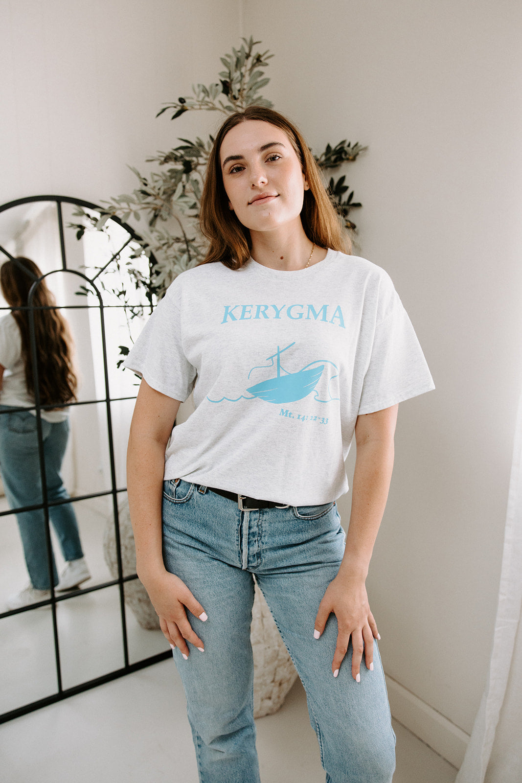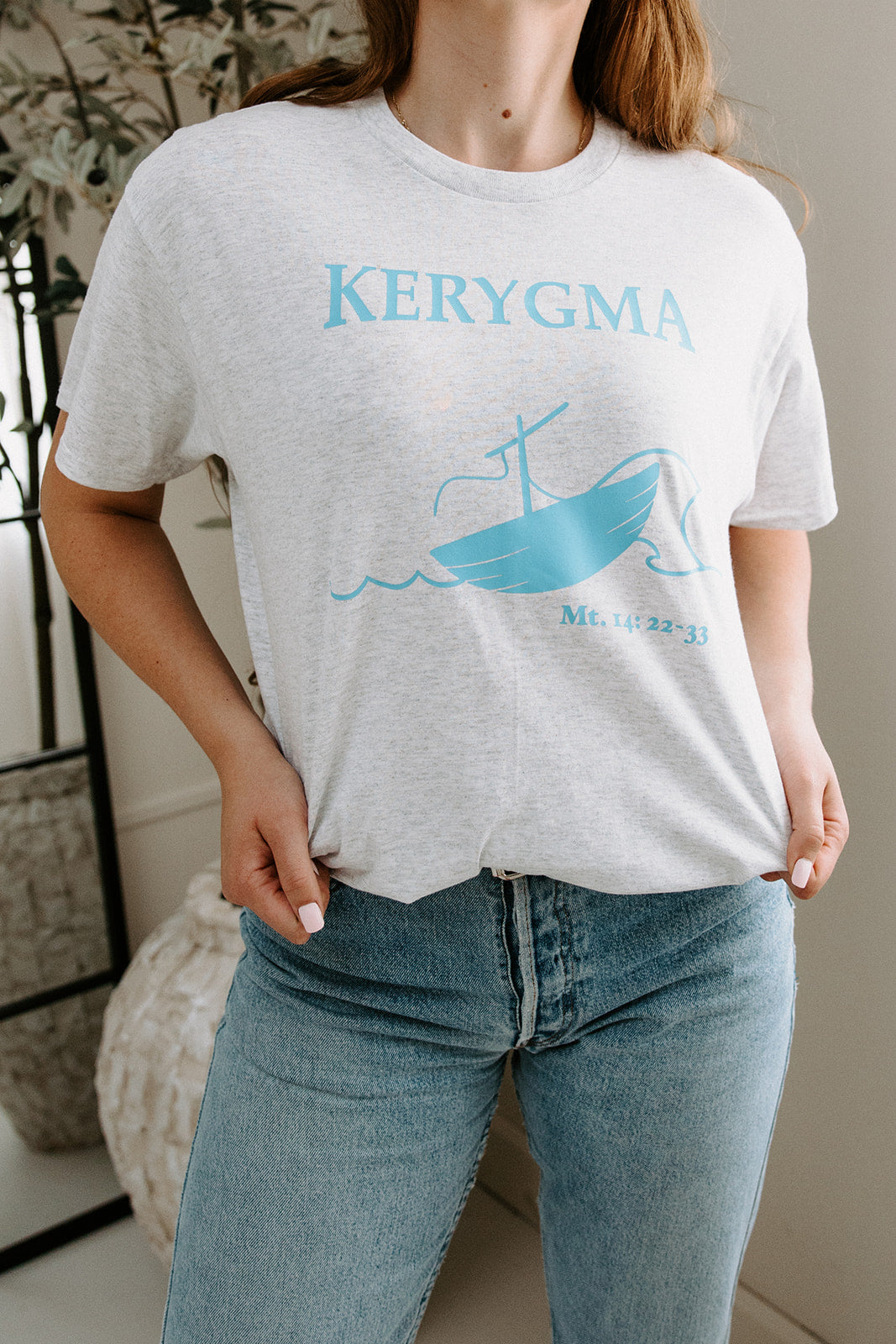 Nuestra camiseta cristiana llamada: 'Kerygma - Mateo 14:22-33' es una camiseta de estilo cristiano hecha a mano y creada para inspirar y construir la fe. Es uno de los pasajes más poderosos de la Biblia donde Jesús camina sobre el agua, para mostrarnos que está ahí con nosotros durante la tormenta con su amor incondicional y nos enseña a confiar en él no solo en nuestra vida diaria, sino también en nuestra vida más profunda, pruebas difíciles.